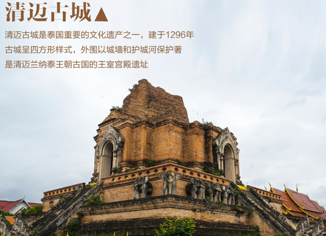 早餐后打卡金木棉島(約90分鐘):街道干凈、綠樹成蔭,氣候宜人,物美價廉、一片繁榮景象……這里不是虛幻的世外桃源,他的名字叫——老撾博膠。參觀【故事村】及【禁毒文創(chuàng)館】(約60分鐘),這里是全球首創(chuàng)以“禁毒”為主題,以預(yù)防毒品、抵制毒品及拒絕毒品三個面向,用故事性、劇場式的設(shè)計理念,以科技互動策展手法,以精彩紛呈的多感官體驗,寓教于樂,為大眾帶來更加豐富多彩的禁毒文化。結(jié)束后前往碼頭或口岸出境老撾,辦理泰國入境手續(xù),參觀【金三角牌坊】與【金三角大佛】(約30分鐘),然后乘汽車前往清邁(車程約4小時),下午抵達清邁,清邁是鄧麗君生前最愛的地方,這座小城安靜,淡雅,空氣干凈清新,呼吸就像在親吻戀人的臉頰。游覽【清邁古城、游覽泰囧廟、水果街】(合計約90分鐘):清邁古城建于 1296 年,是由褐紅色磚塊砌起的城墻圍起一個兩米左右高的正方形??上Т蟛糠纸ㄖ荚跉q月的更迭中消失了?,F(xiàn)在留下最完整的一座城門是東邊城墻的塔佩門。正對塔佩門的路,就被稱作塔佩路(Thapae Road)。接著游覽【泰囧廟】《泰囧》中拍攝的寺廟,與清邁的其他一般寺廟不同。規(guī)模不大,五臟俱全,主廟宇呈亭臺樓閣樣式,金碧輝煌, 寧靜圣潔。清邁這里沒有消磨時間的溫柔海灘,沒有瘋狂血拼的豪華商場,有的只是近乎凝固的時間和讓人心情無比舒爽的安靜。你可以毫無目的地在古城中放空漫步,也可以穿越叢林跋山涉水,更可以在周末夜市瘋狂血拼,喧鬧和安詳都自然地結(jié)合在這個城市。來清邁,體驗曾經(jīng)蘭納王國的獨特文化歷史,細嗅這朵清雅的泰北玫瑰。之后前往【清邁夜市】(約60分鐘)清邁夜市是清邁所有旅游商店的發(fā)源地。每天從日落到晚上11點,這里都熙來攘往,好不熱鬧。有很多山地部落藝術(shù)家在這里開設(shè)攤位,他們穿著自己的特色服飾,很好辨認。道路兩旁的人行道上都是擺滿各種各樣民族特色物品的小攤,也有美食一條街,各種各樣當?shù)氐奶厣〕浴?/p>